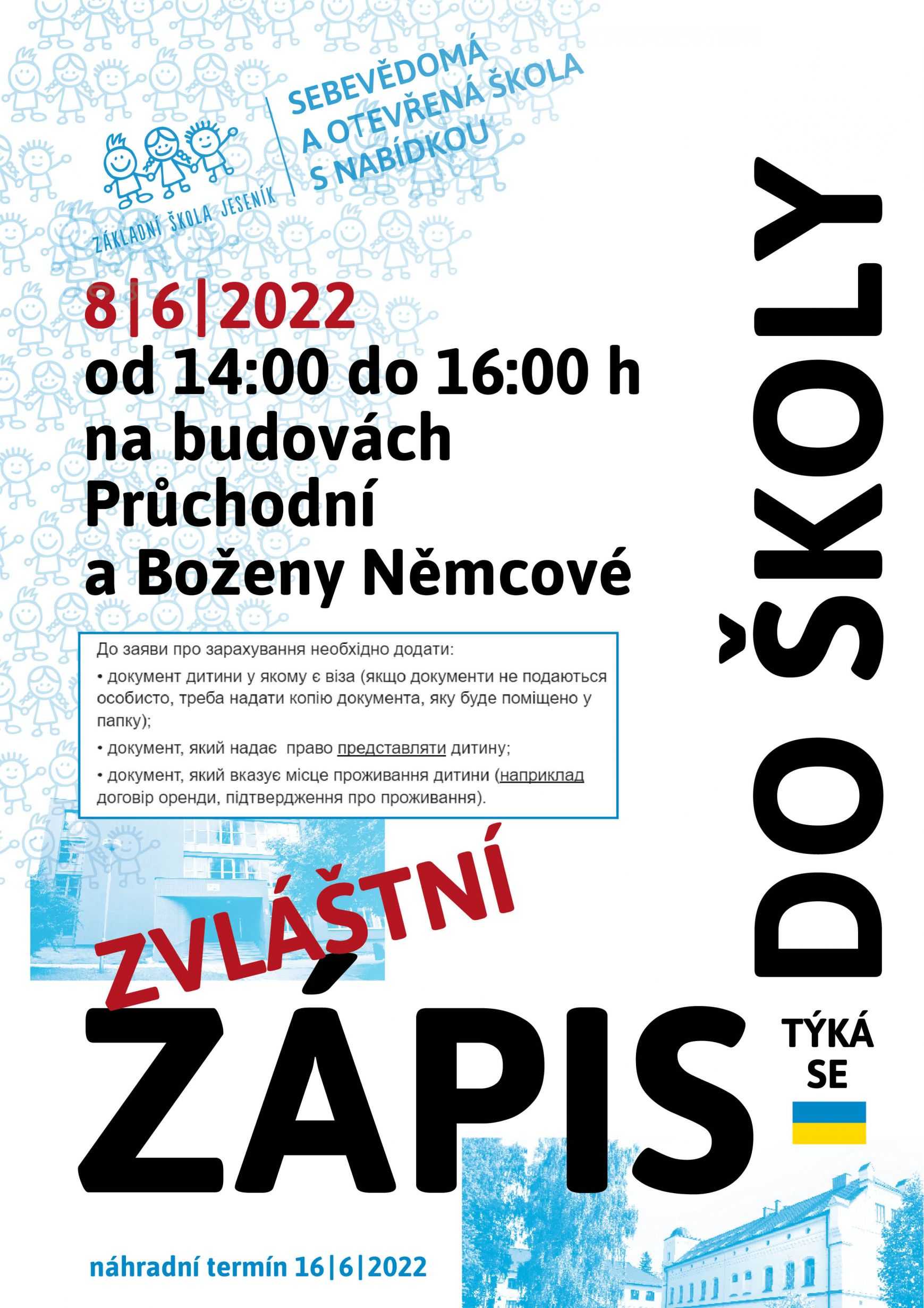 JIŽ DNES ZÁPIS PRO UKR ŽÁKY DO 1. TŘÍD 08.06.2022 | AktuálněJiž dnes 8. 6. 2022 proběhne ZÁPIS DO UKR ŽÁKY DO 1. TŘÍD
