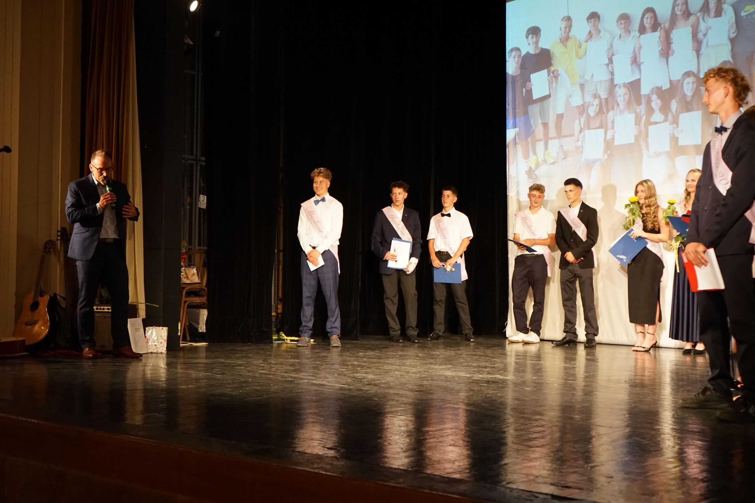 Vycházející žáci Základní školy Jeseník se ve čtvrtek 26. června rozloučili se svými pedagogy i spolužáky během slavnostního ceremoniálu v Divadle Petra Bezruče. Z rukou ředitele školy Dominika Liberdy převzali pamětní listy a od svých třídních učitelů také poslední vysvědčení.